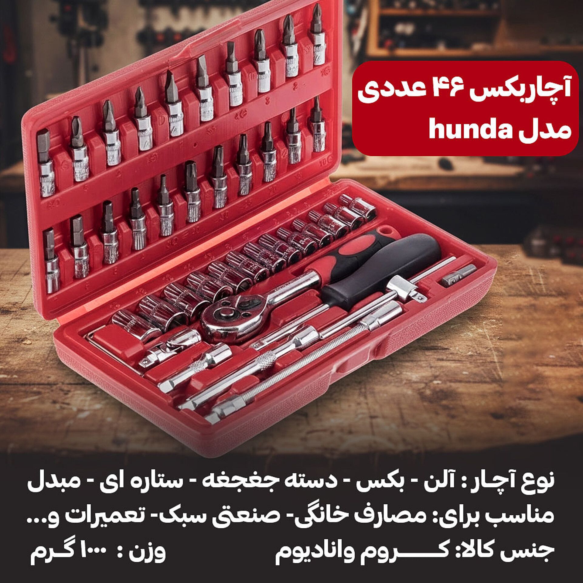 ویژگی های جعبه 46 پارچه آچار و سری بکس و پیچ گوشتی: