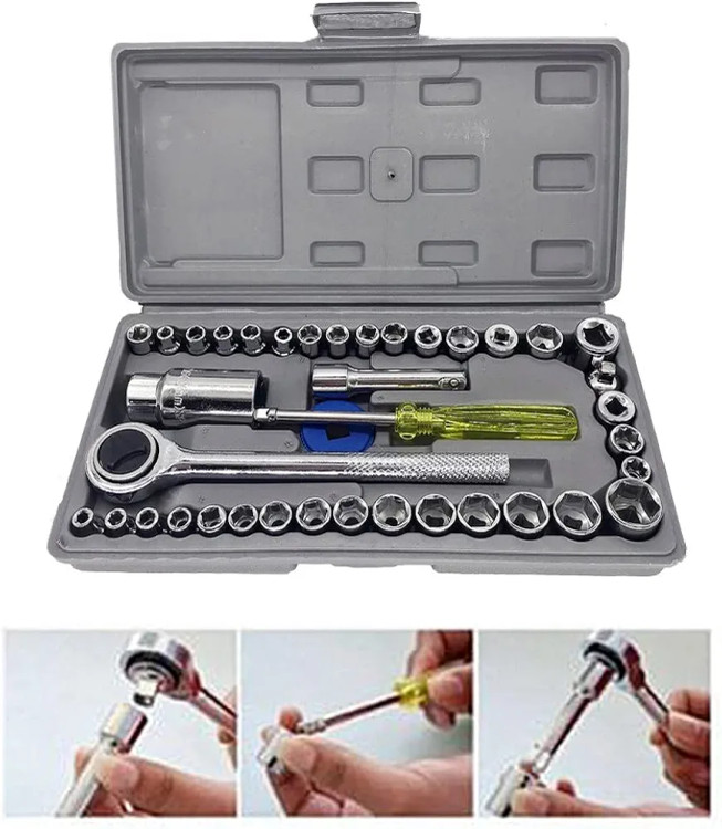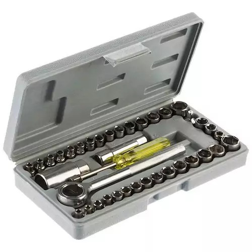 - دارای دسته استاندارد و 40 عدد سری آچار بکس