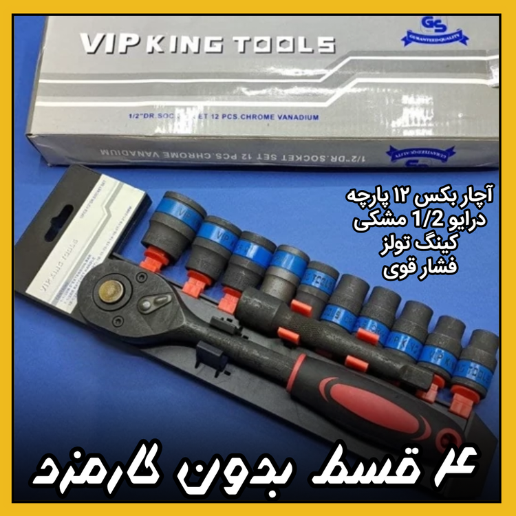 آچار بکس ۱۲ پارچه ریلی درایو 1/2 مشکی فشار قوی (۴ قسط بدون کارمزد) کینگ تولز VIP king tools تکنولوژی آلمان