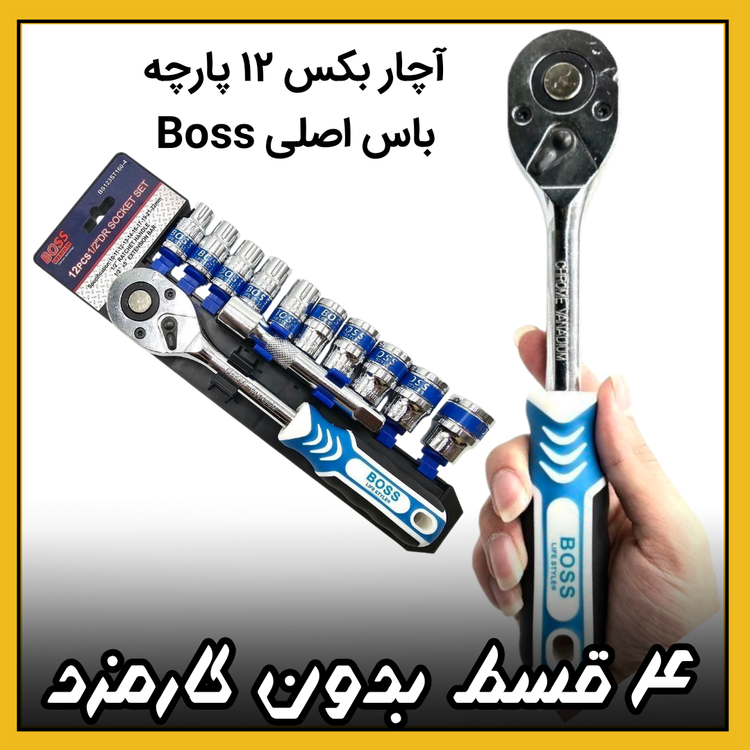 آچار بکس ۱۲ پارچه ریلی درایو 1/2 باس (۴_قسط بدون کارمزد) فشارقوی Boss اصلی وکیوم